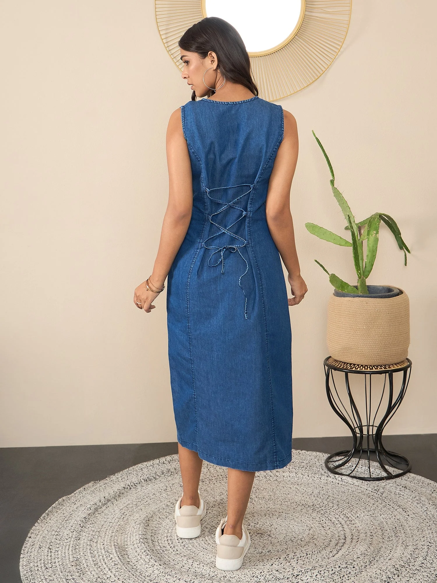 Women's Blue Denim Solid Dress - Stylestone