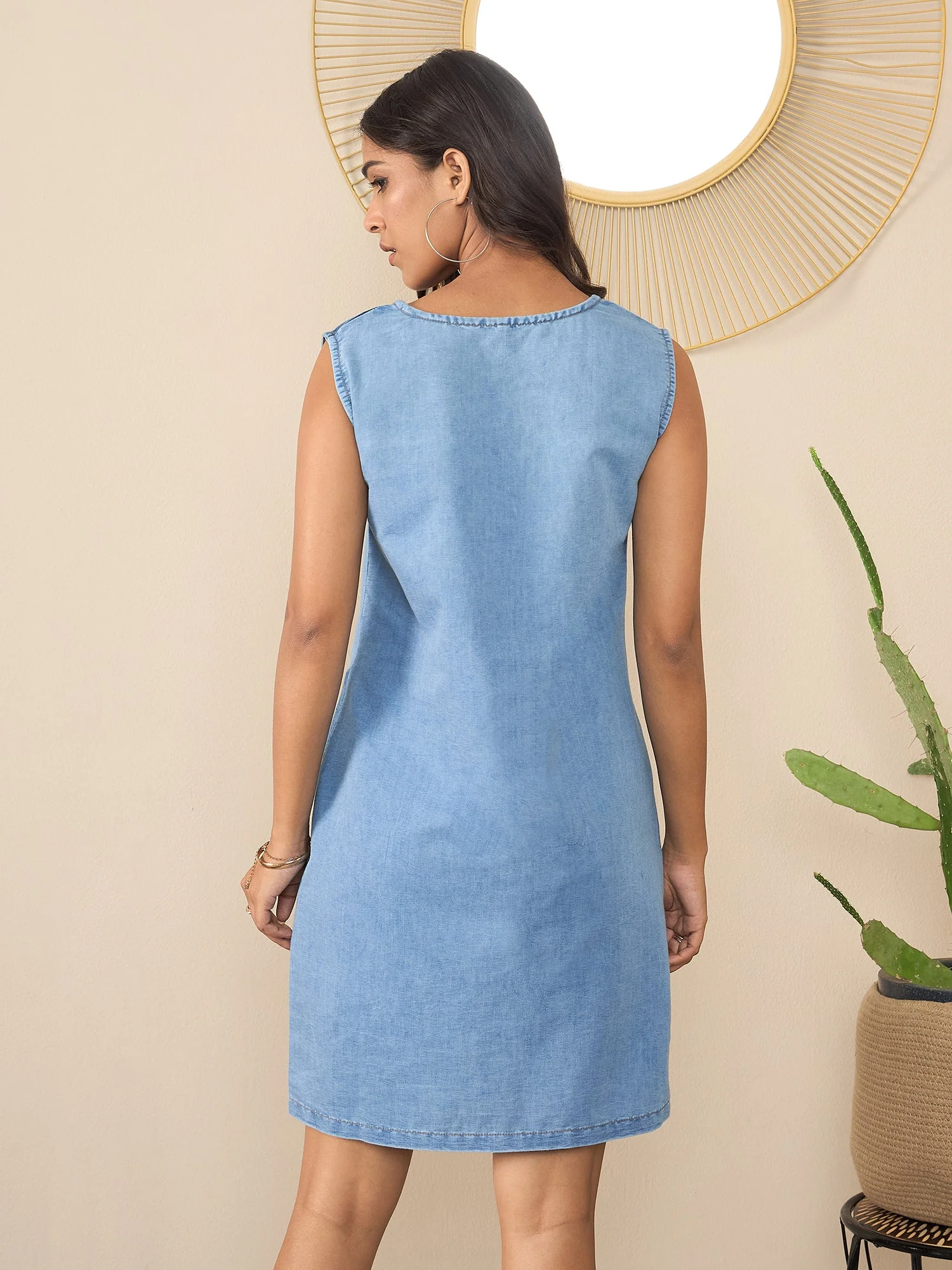 Women's Blue Denim Patchwork Dress - Stylestone