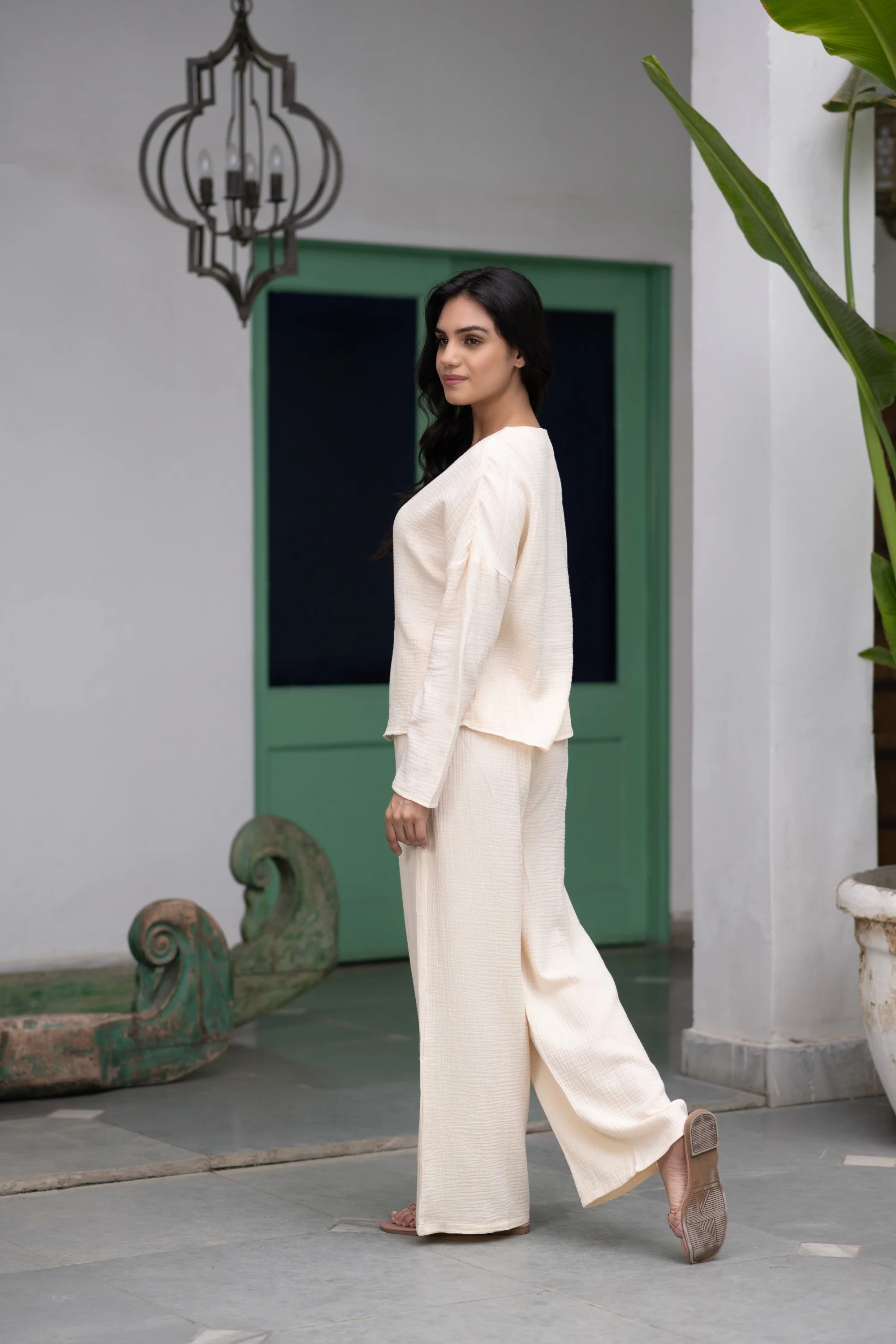 Dress luxuriously in our pure cotton two piece loungewear set for the most comfortable look of a lifetime. This Night suit for women includes a pure cotton top for women and a soft cotton pyjama to complete the look has been brought to you by the best online fashion brand Black Beads. The cotton loungewear two piece set for woman has a v-neck design and the women’s top comes with buttoned closure and full sleeves length. Check out the photos of the product for a more detailed view.